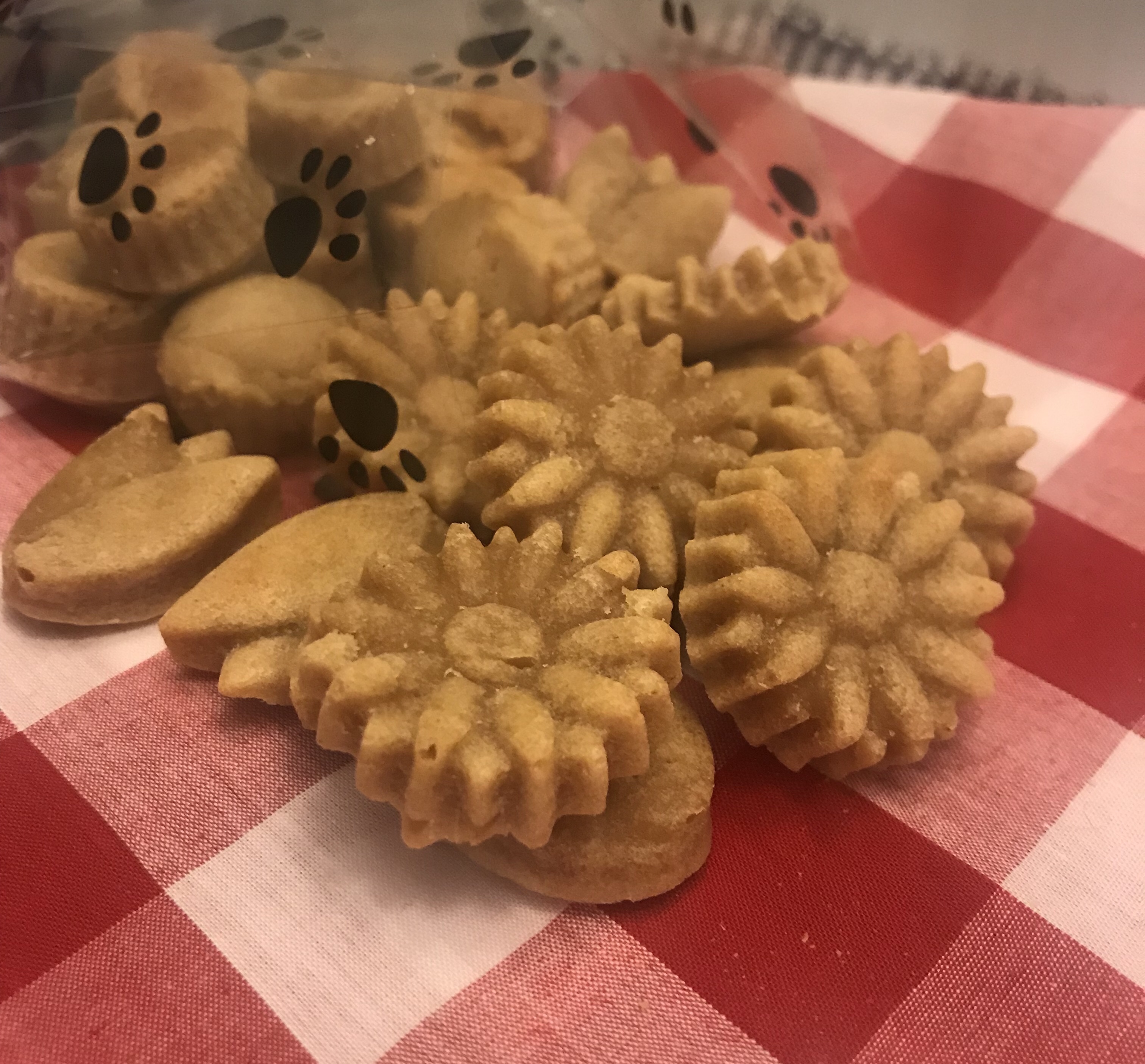 Moshi’s – Made from peanut butter, flour, pumpkin, and egg, these are more of a biscuit type cookie. These have proven to be a favorite with our tester pups.